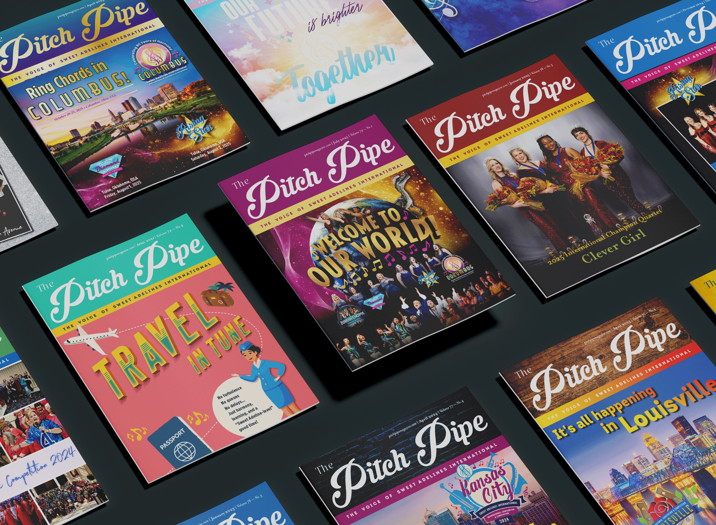 While at Sweet Adelines International, I designed The Pitch Pipe, a quarterly publication that keeps readers informed and inspired about barbershop music and culture. The magazine includes various articles, stories, and resources related to barbershop activities and community engagement.